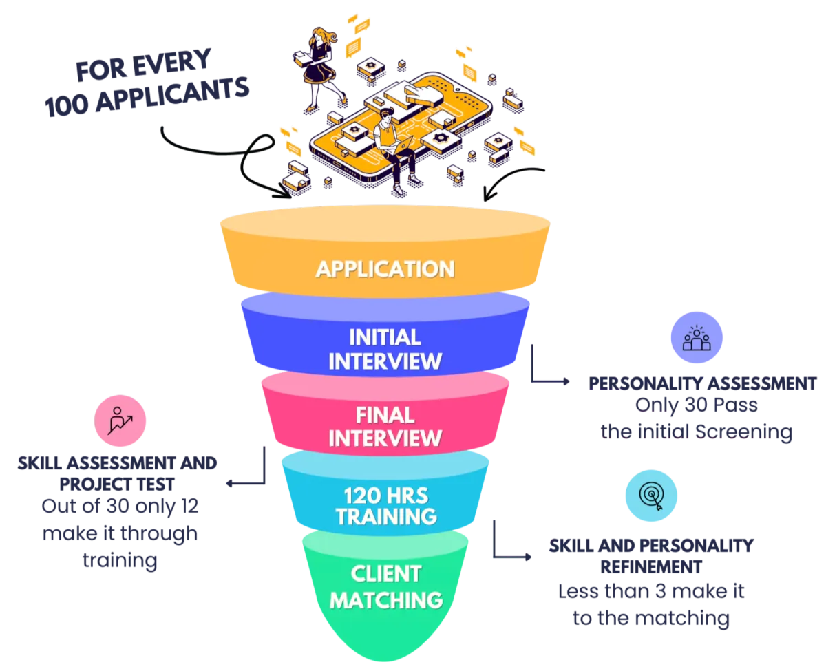 At Stampstaff, we have a rigorous screening process that includes skill assessments, experience verification, and behavioral interviews. We ensure our VA's meet high standards in professionalism, reliability, and expertise.